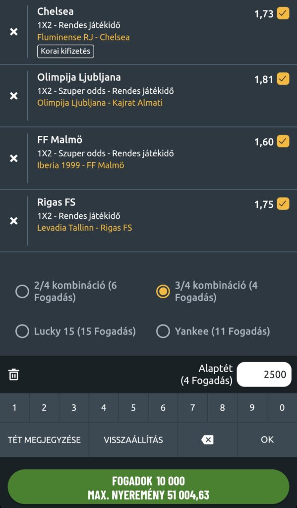 BL Selejtező és Klub VB Tippmixpro 3/4 szelvényünk – 07.08.