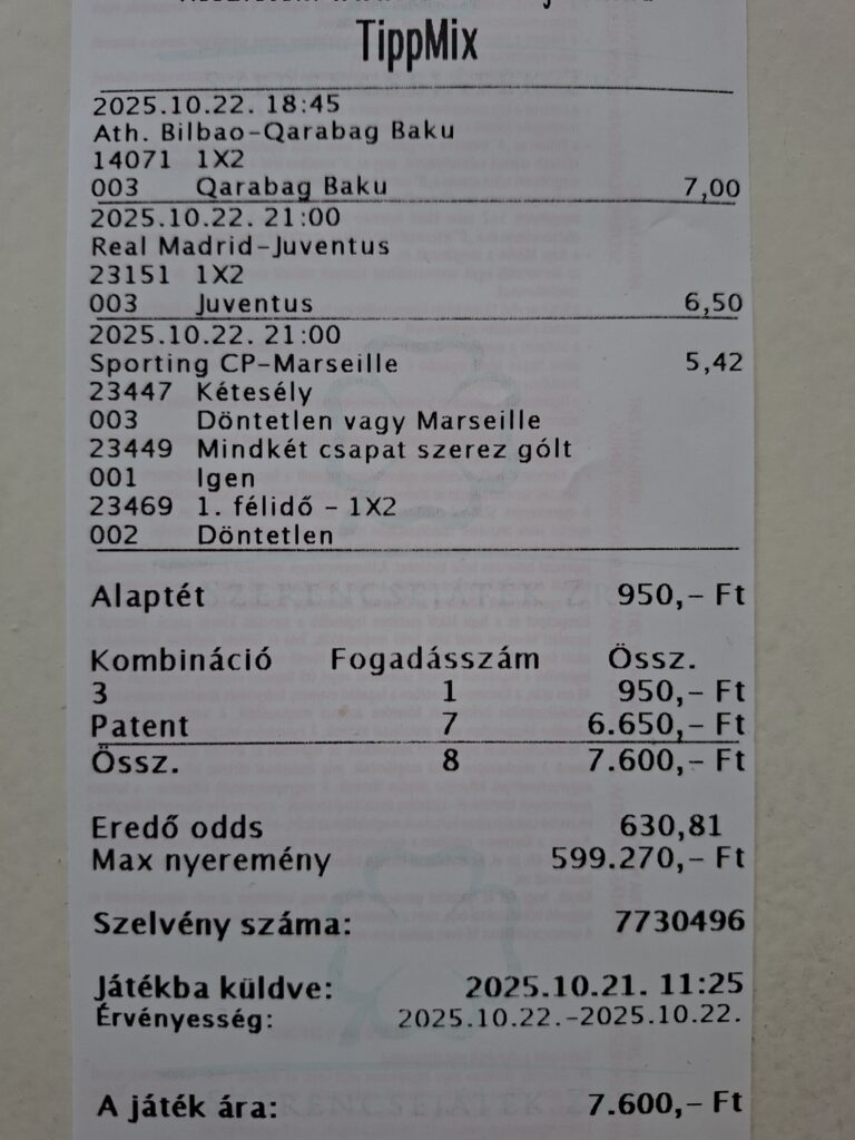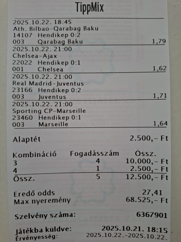 #hirdetés (+18) #maradjonjáték (x) Akár 10 000 Ft INGYENES fogadás új regisztrálóknak! *Feltételek érvényesek! Bónuszkód: FORTUNA10000 Friss (2025.10.20.) hivatalos tájékoztatás alapján a Szerencsejáték Zrt. saját üzemeltetésű értékesítőhelyei 2025. október 23-án (csütörtök) zárva tartanak.A jó hír: a játék- és fogadási rendszerek ezen a napon is működnek, így interneten és SMS-ben gond nélkül feladhatod a játékaidat. Partneri […]