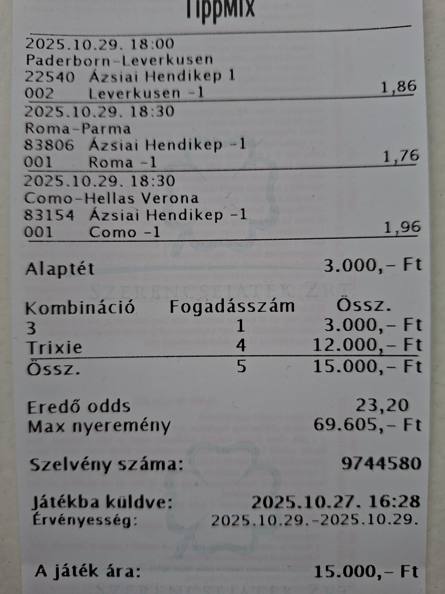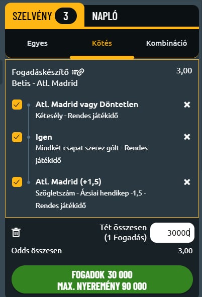 A trixie típusú kötést akkor érdemes játszani, ha kettes környékén vannak a szorzók és legalább 2-ön van pénz visszafizetési opció! Hamarosan egy hosszabb cikkben kifejtjük, miért- és mikor érdemes trixie fogadást tenned! Nézz vissza később oldalunkra!