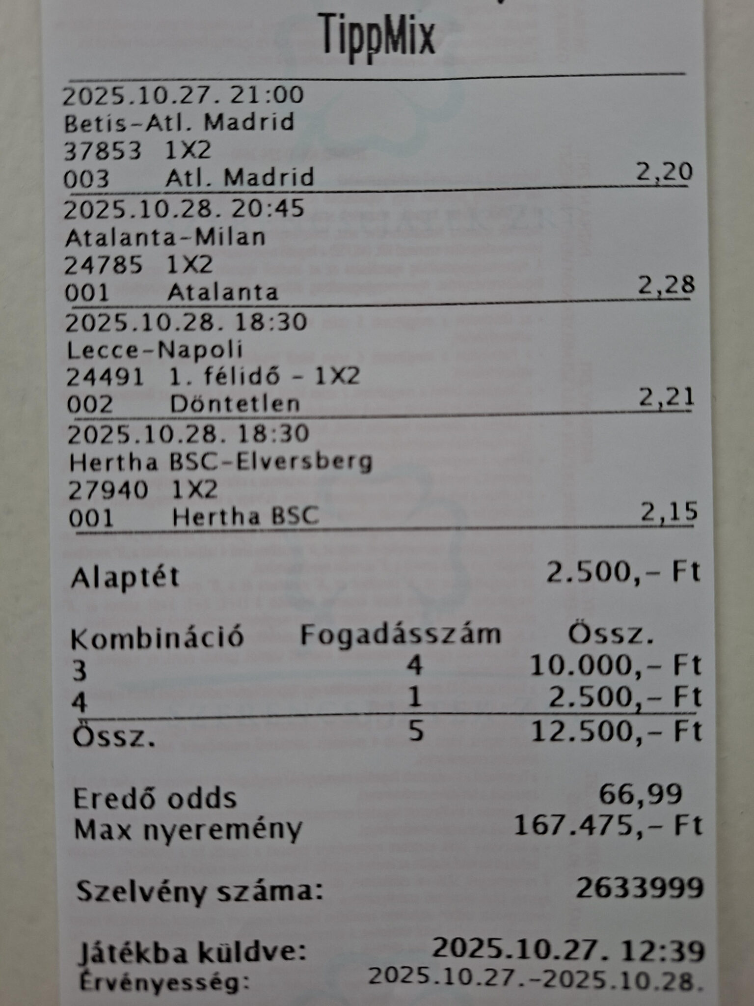 - Ajánlott tét: bankroll 0,5%-a!