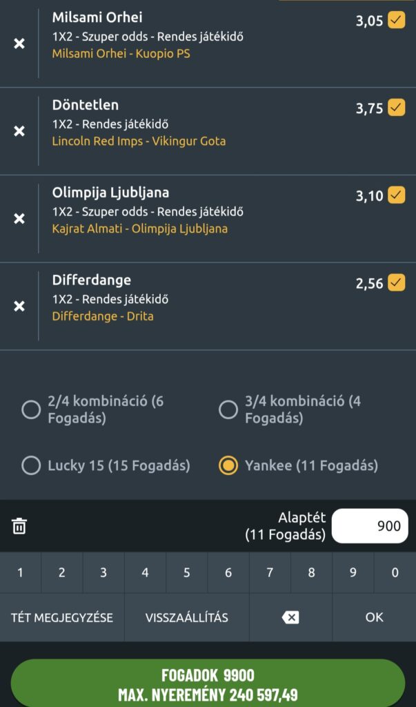 BL Selejtező Tippmixpro Yankee szelvényünk – 07.15.