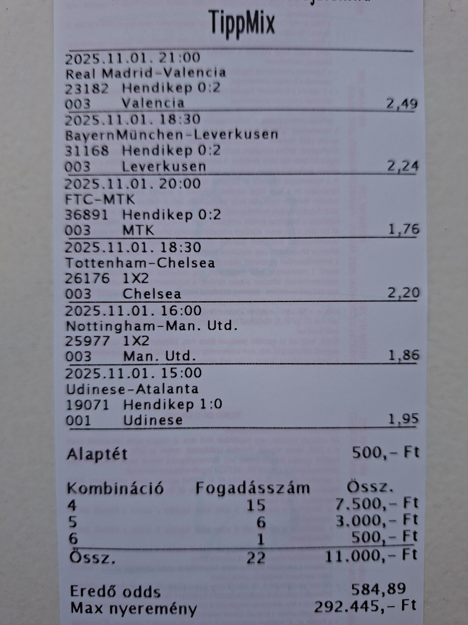 - Őrizd meg a kapott szelvényt, mivel ez igazolja a fogadást.